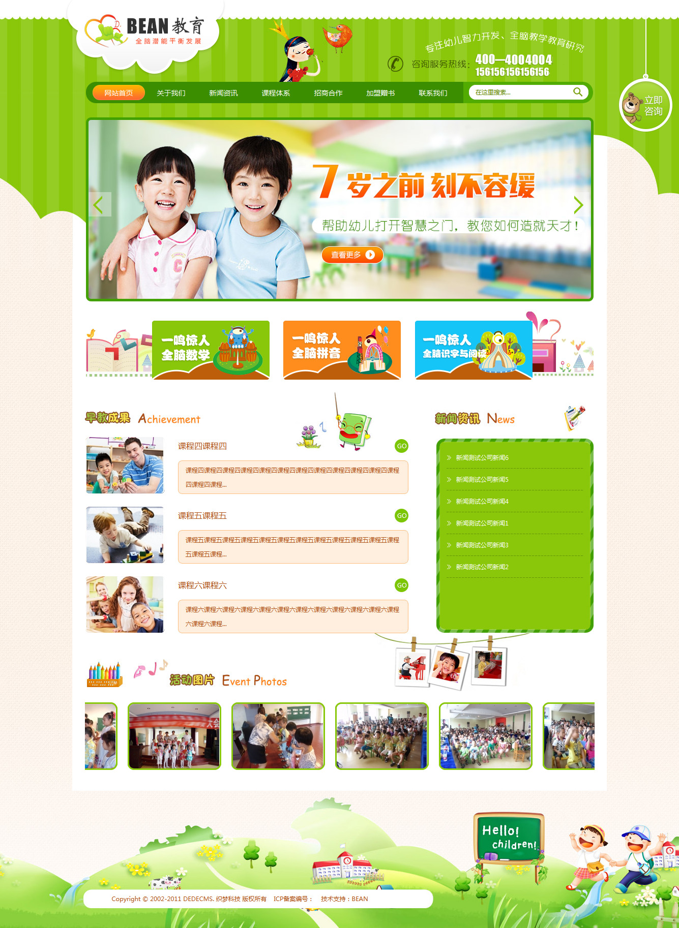 dedecms幼儿园儿童教育艺术培训班通用企业织梦模板,网站源码非常简介大气,图片展示效果非常突出。由织梦dede内核搭建,已经设置好栏目,各种JS特效都已实现,调用好数据,方便您